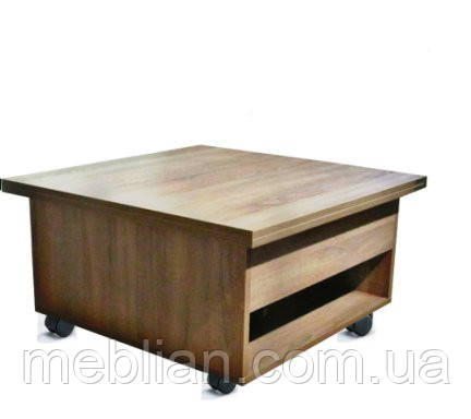 Чи можна за невеликим журнальним столом розсадити гостей, відзначити день народження, іменини і т.д. При цьому не заважати один одному, відчувати себе вільно і комфортно. Можна, якщо купити стіл-трансформер, який дуже легко розкладається з журнального столу, в високий (75см), і збільшується по площі в 2 рази. Для трансформації столу використовується посилений механізм трансформації, що дозволяє легко розкласти стіл навіть дитині. У розкладеному положенні стіл міцний і стійкий. Для зручності пересування по кімнаті розроблений варіант столу на колесах з фіксаторами. Можлива зміна стандартного розміру, конструкції і кольору столу під потреби замовника, і існуючі меблі. Ціна і термін виготовлення нестандартного замовлення вираховується індивідуально. Можна також, виготовити комбінований стіл в двох кольорах. Ціна комбінованого столу + 100грн до вартості звичайного. Відправляємо столи в будь-яку точку України, зручним для Вас перевізником.